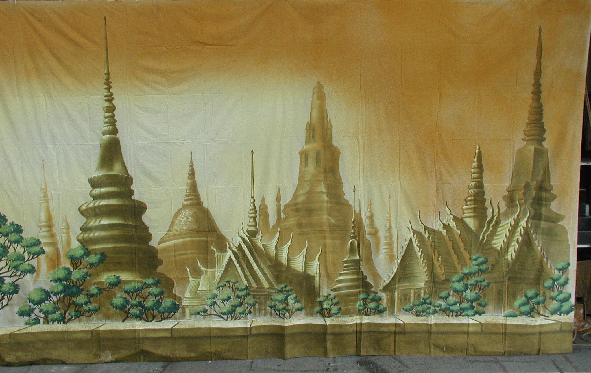 Thoroughly Theatre Stage Cloths & Props. Our Bangkok Daytime cloth is commonly used for scenes & shows such as pantomime, Aladdin, Bangkok, City, Oriental, Palace.