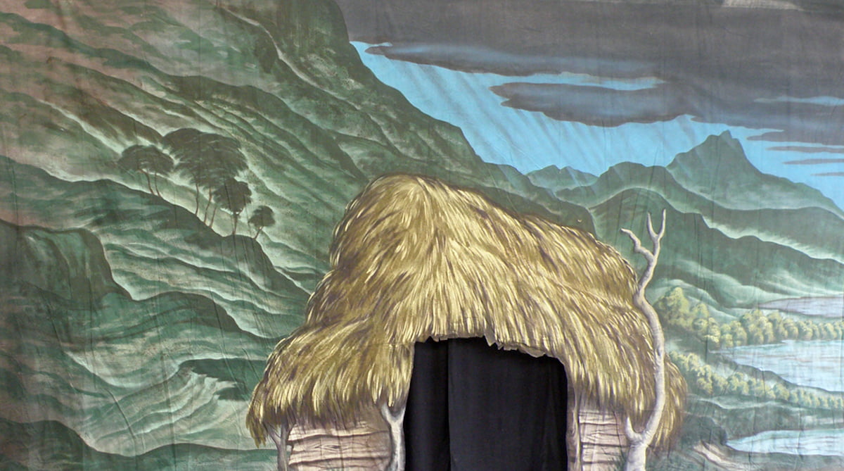 Thoroughly Theatre Brockie Bothy Canvas Theatre Backcloth is commonly used for Mountains, Hut, Brigadoon, Brockie Bothy