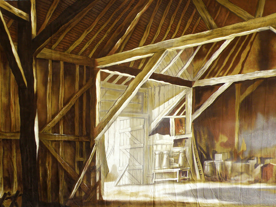 Thoroughly Theatre Cowshed Calico Theatre Backcloth is commonly used for Cowshed, Barn, Interior