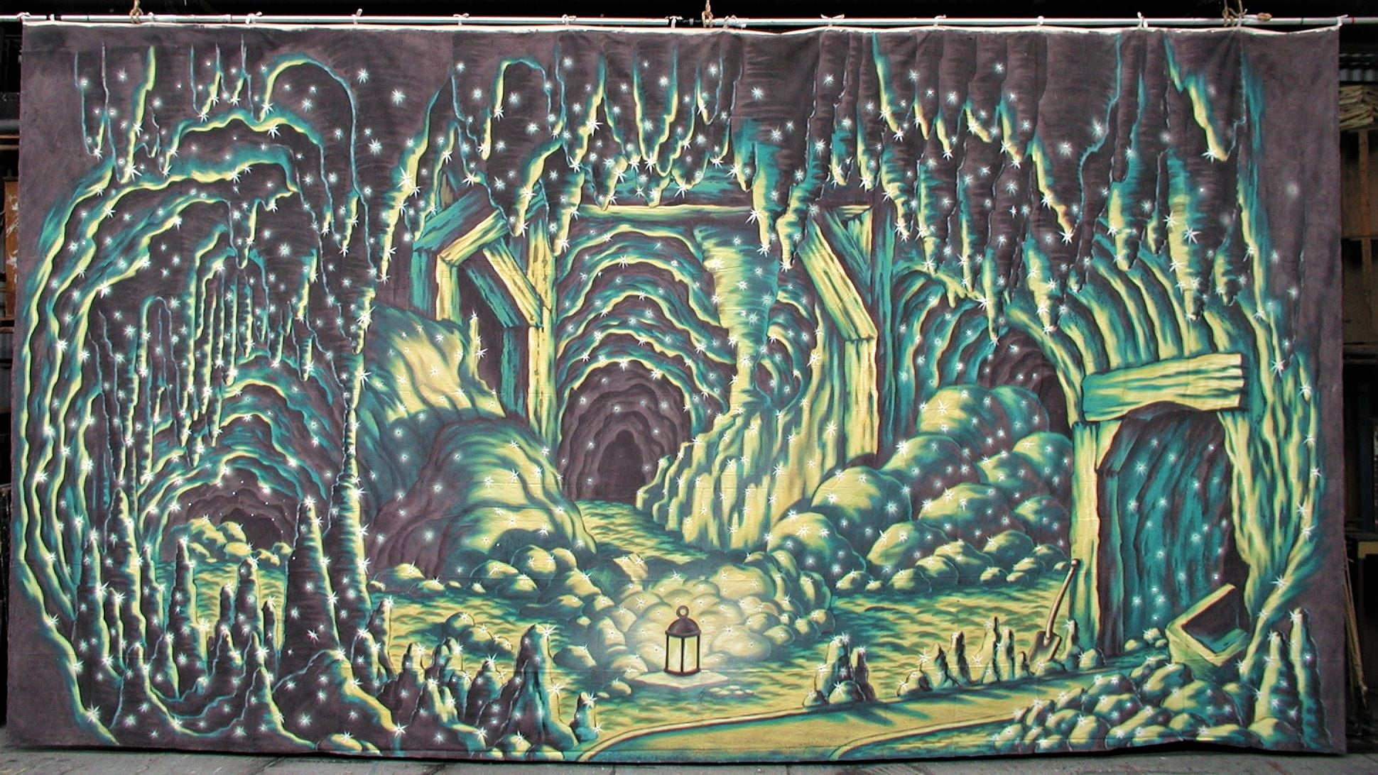 Thoroughly Theatre Stage Cloths & Props. Our Flat Black serge is commonly used for scenes & shows such as pantomime, Diamond, mine, Aladdin,  It’s 34ft in wide by 17ft in high and made from Canvas.