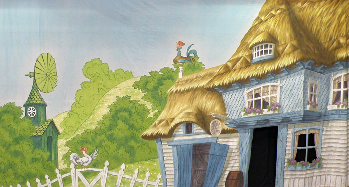 Thoroughly Theatre Stage Cloths & Props. Our Exterior Goose Farm Calico Theatre Cutcloth is commonly used for scenes & shows such as Goose, Farm, Barn, Farm House, Pantomime, Honk, Cottage It’s 32ft 0in wide by 17ft 6in high and made from Calico.