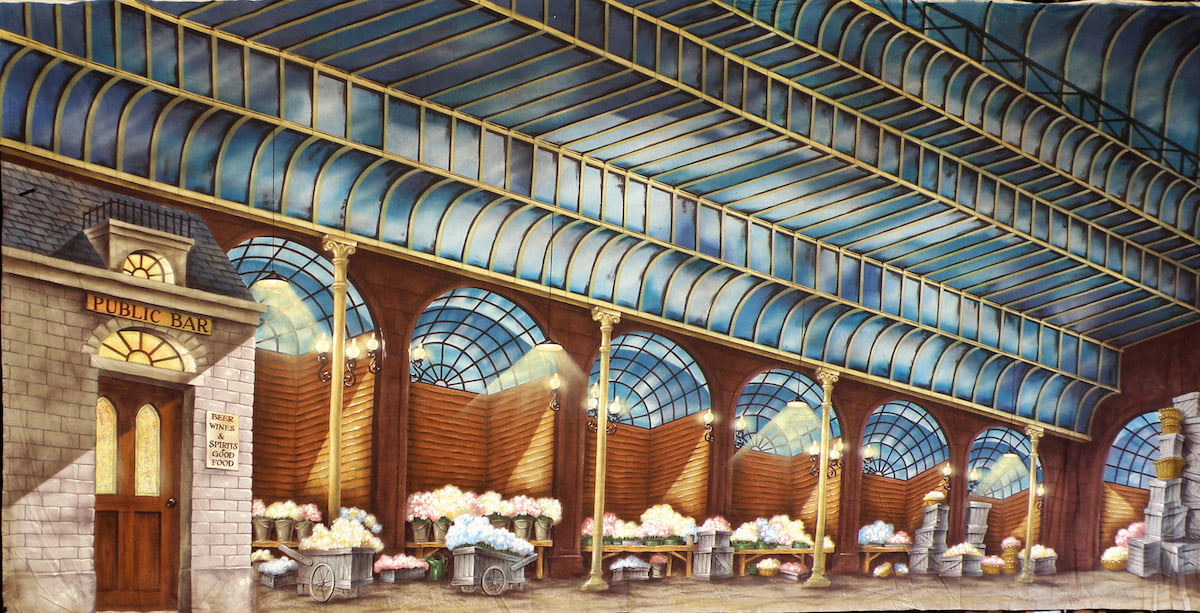 Thoroughly Theatre Stage Cloths & Props. Our Flower Market Canvas Theatre Backcloth is commonly used for scenes & shows such as Market, London, Flower Market, Mfl, Warehouse, It’s 32ft 2in wide by 17ft 6in high and made from Canvas.