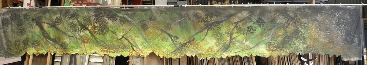 Thoroughly Theatre Stage Cloths & Props. Our Foliage Canvas Theatre Border is commonly used for scenes & shows such as Foliage, Border, trees, forest, woods It’s 40ft 0in wide by 9ft 0in high and made from Canvas.