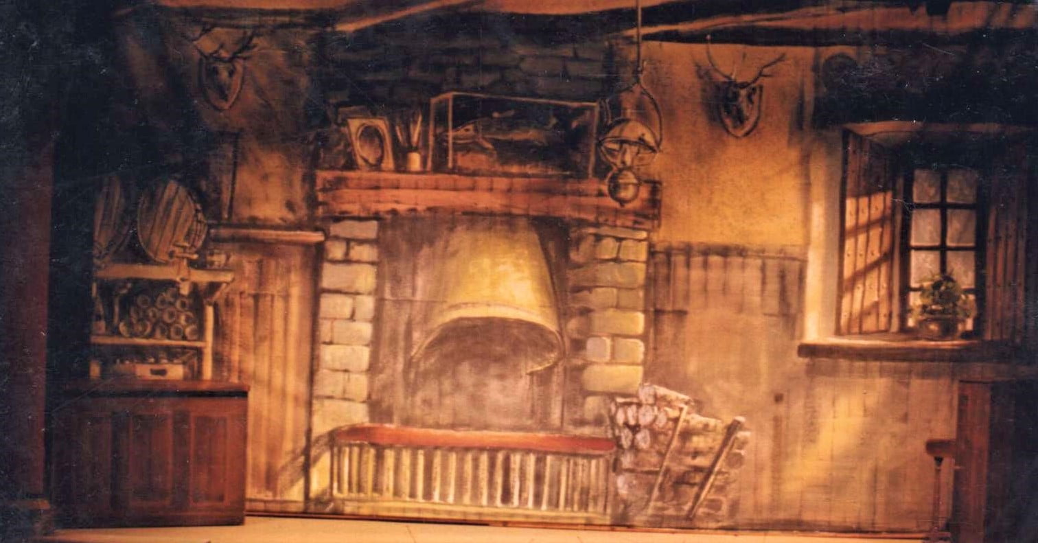 Thoroughly Theatre Stage Cloths & Props. Our Hareford Arms Calico Theatre Backcloth is commonly used for scenes & shows such as Kitchen, Room, Interior, Pantomime, cottage, House.