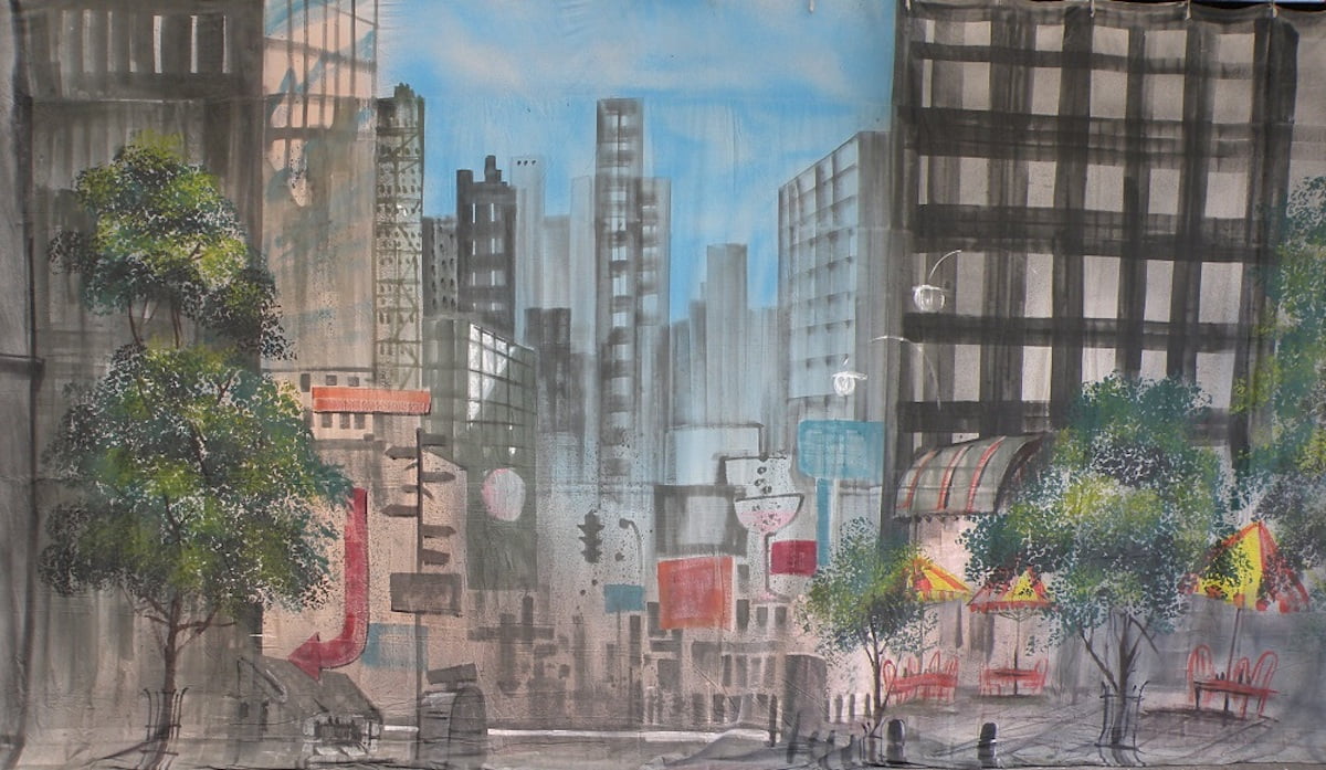 Thoroughly Theatre New York Street Calico Theatre Backcloth is commonly used for American Street, 42nd Street, New York Street