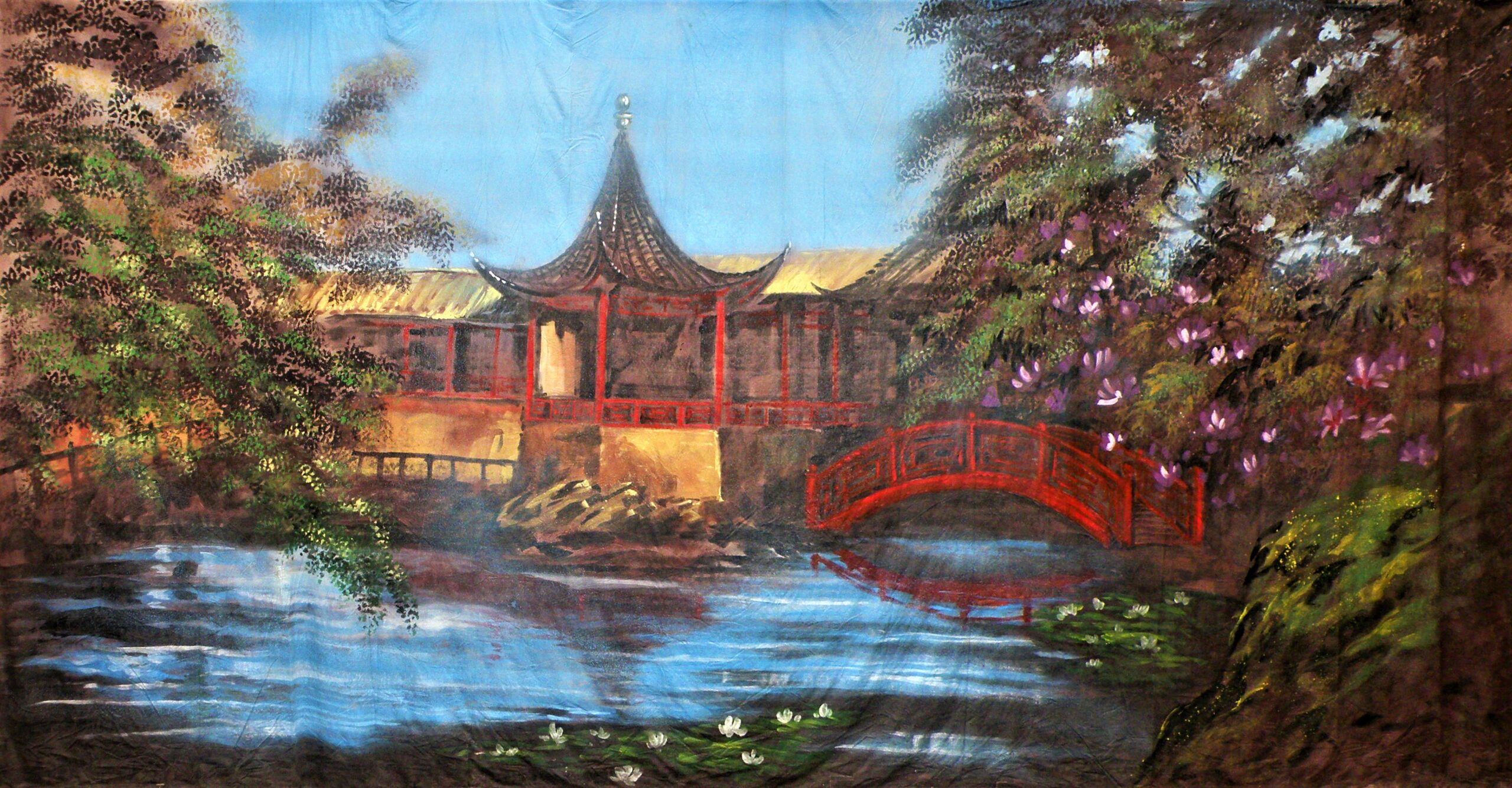 Thoroughly Theatre Palace Gardens Canvas Theatre Backcloth is commonly used for River, oriental, trees, bridge